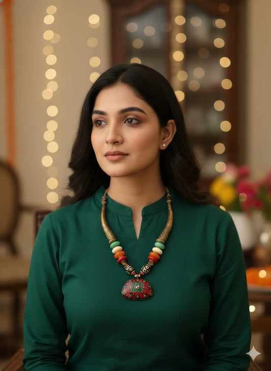 Antique Brass & Multi-Gemstone Tribal Heritage Necklace