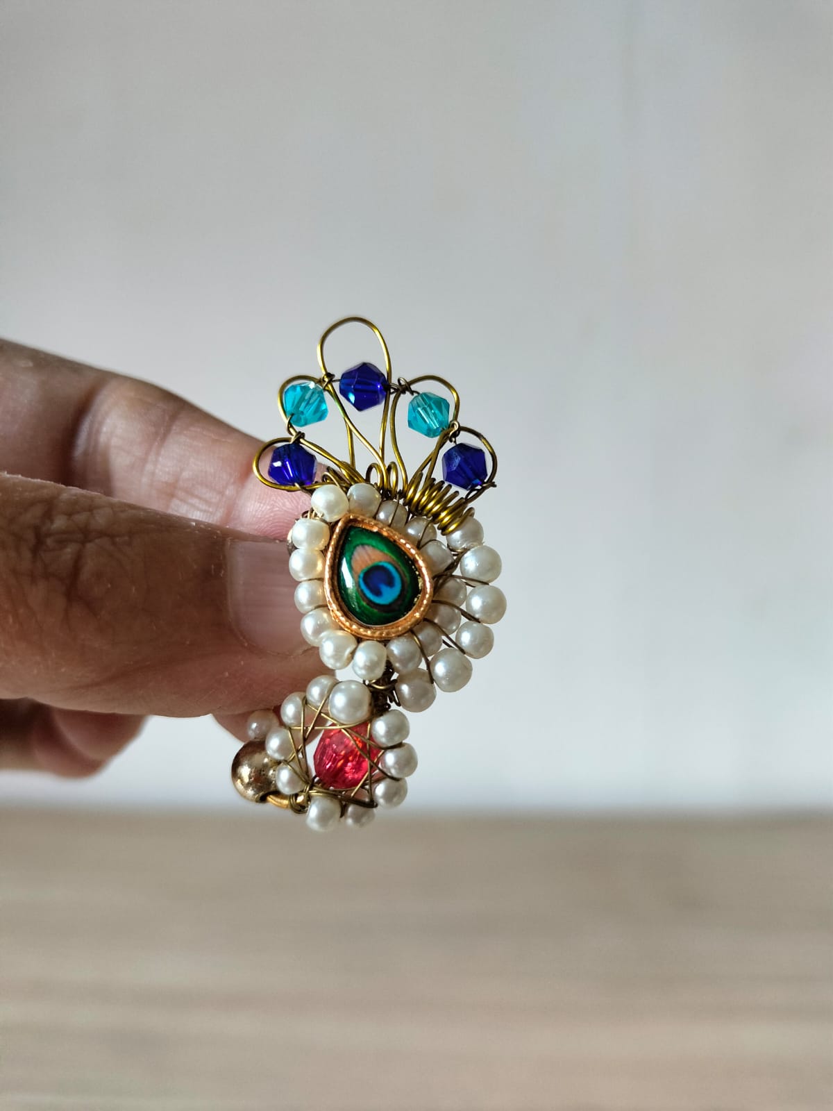 The golden framework is shaped like a delicate peacock feather, symbolising beauty, dance, and royalty.
