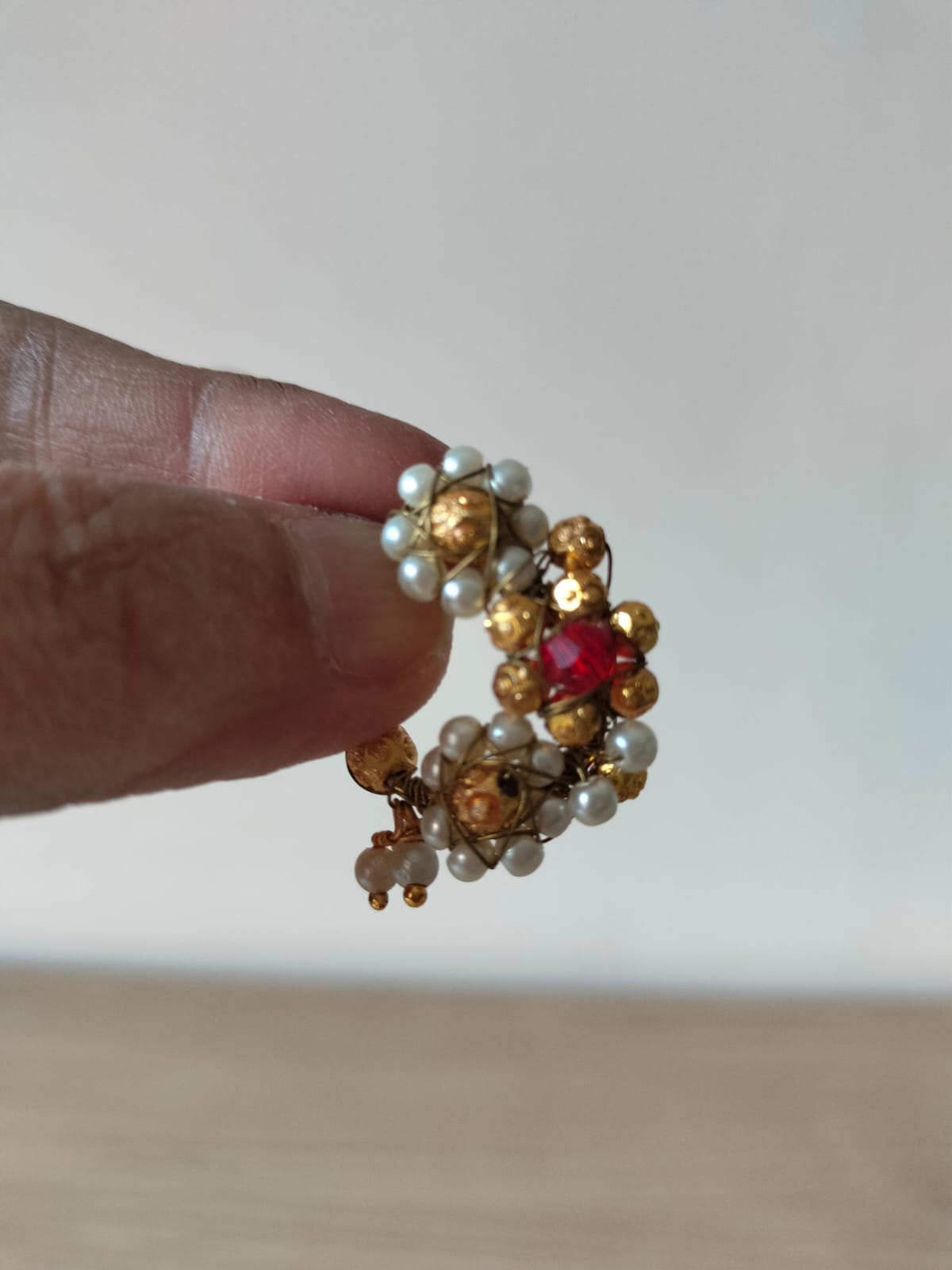 A traditional raised engraving technique on the gold-toned base. It gives the Nath a rich, 3D texture and a premium vintage feel.